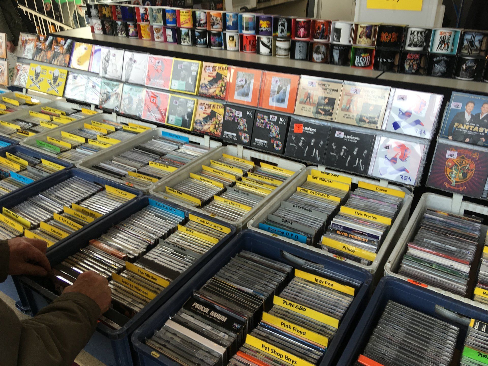 CDs sind noch mit gut einem Viertel vertreten, als Second-Hand zu Superpreisen oder neu und dann meist günstiger als im Laden. So verteilt sich das Interesse der Besucher gleichmäßig auf alle Tonträgerarten, inklusive DVDs. Alle erdenklichen Fan-Souvenirs wie Bücher, Autogrammkarten, Zeitschriften, Shirts, Poster, Kalender ergänzen das Börsenangebot. Es gibt auch eine große Auswahl an Fachzubehör (Preiskataloge, Hüllen, Aufbewahrungssysteme)