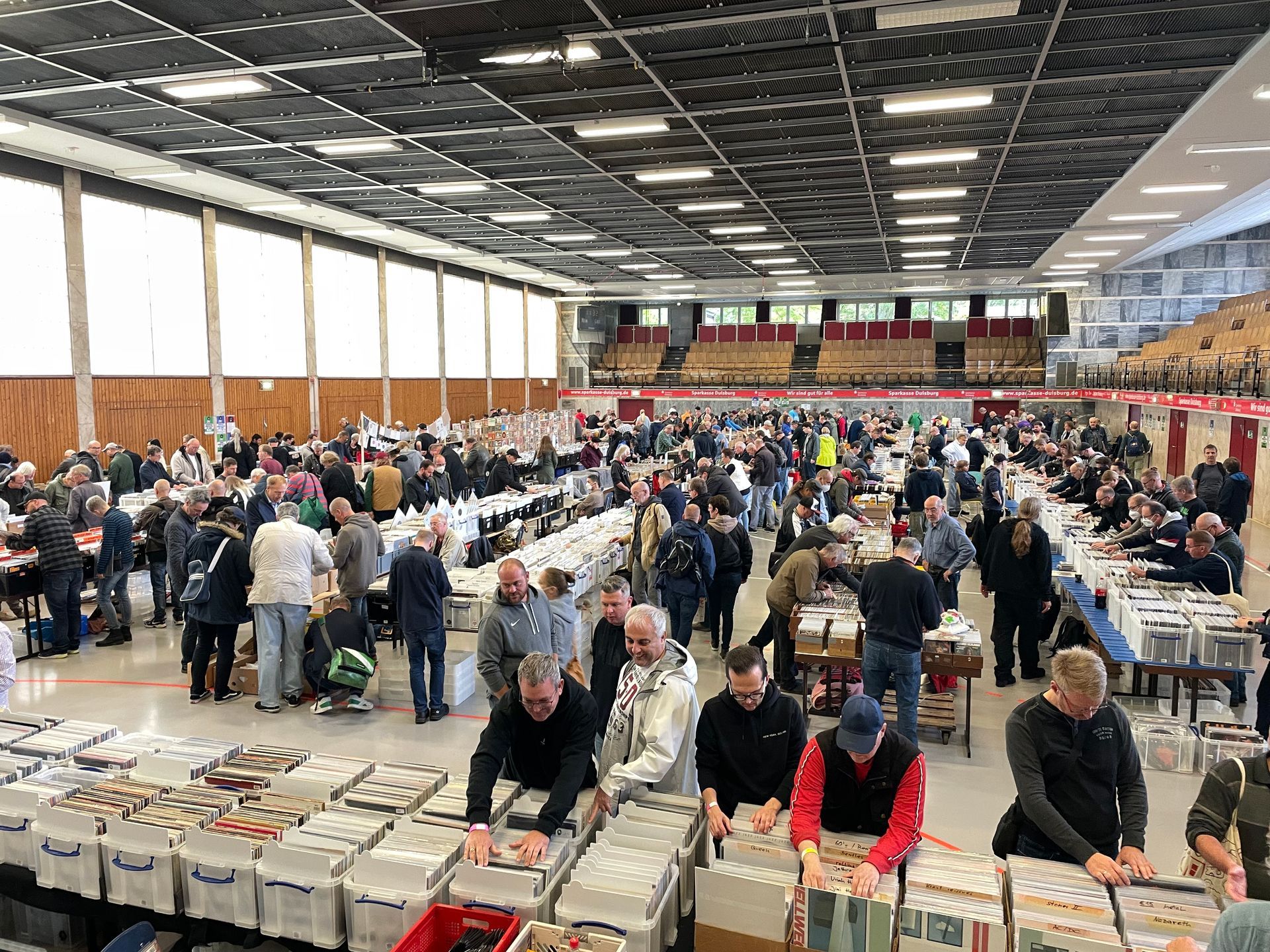Erst seit kurzem veranstalten wir die große Börse in Duisburg. Schnell hat sich die Börse als Top Veranstaltung etabliert. Die Lage zwischen dem Rheinland und dem Ruhrgebiet sowie die Nähe zu den Niederlanden bringt viele verschiedene Aussteller und Vinylfans zusammen.